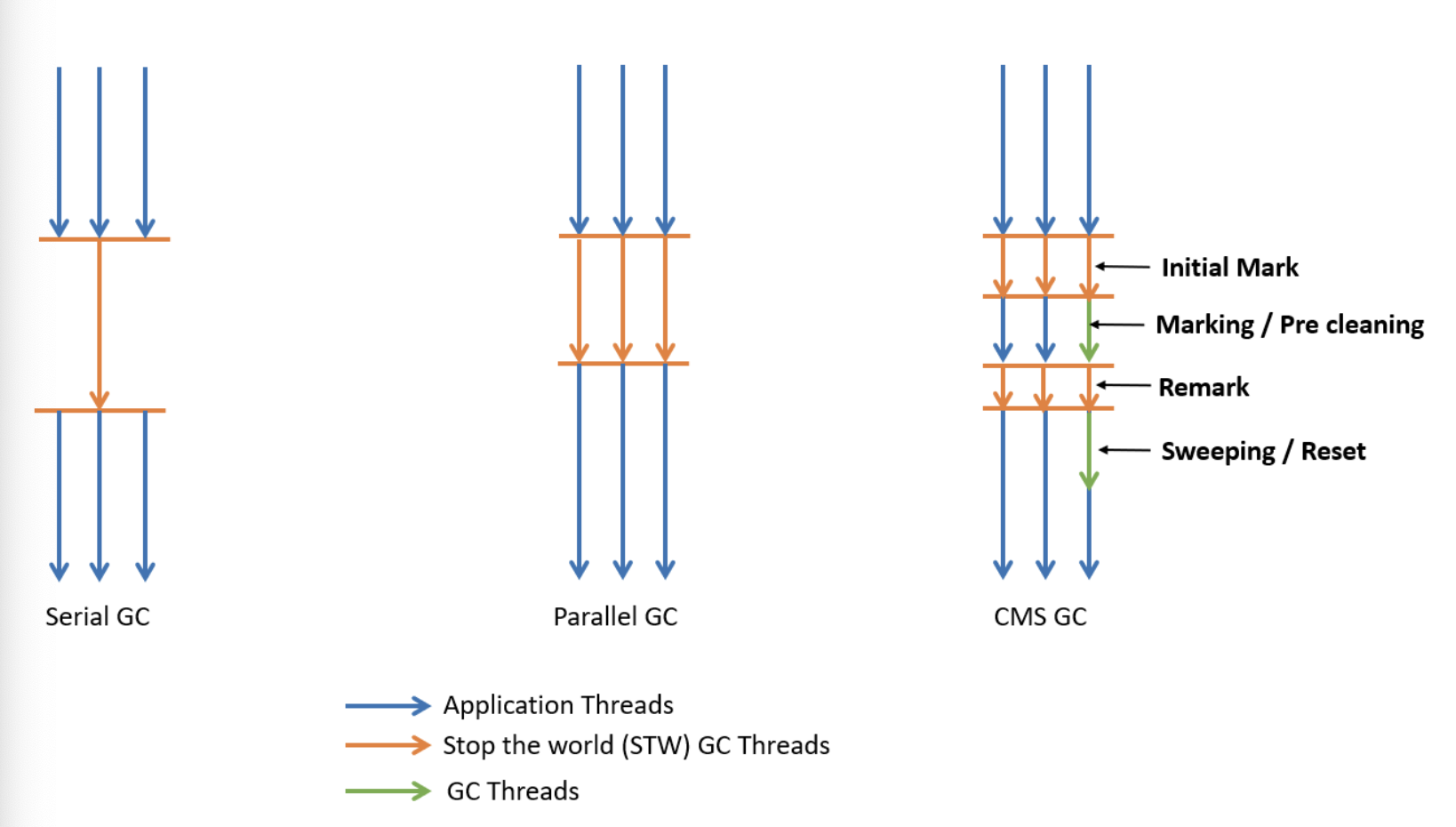 - Minor GC 에는 멀티 쓰레드로 Parallel 하게 GC를 수행, Major GC는 싱글 쓰레드로 동작