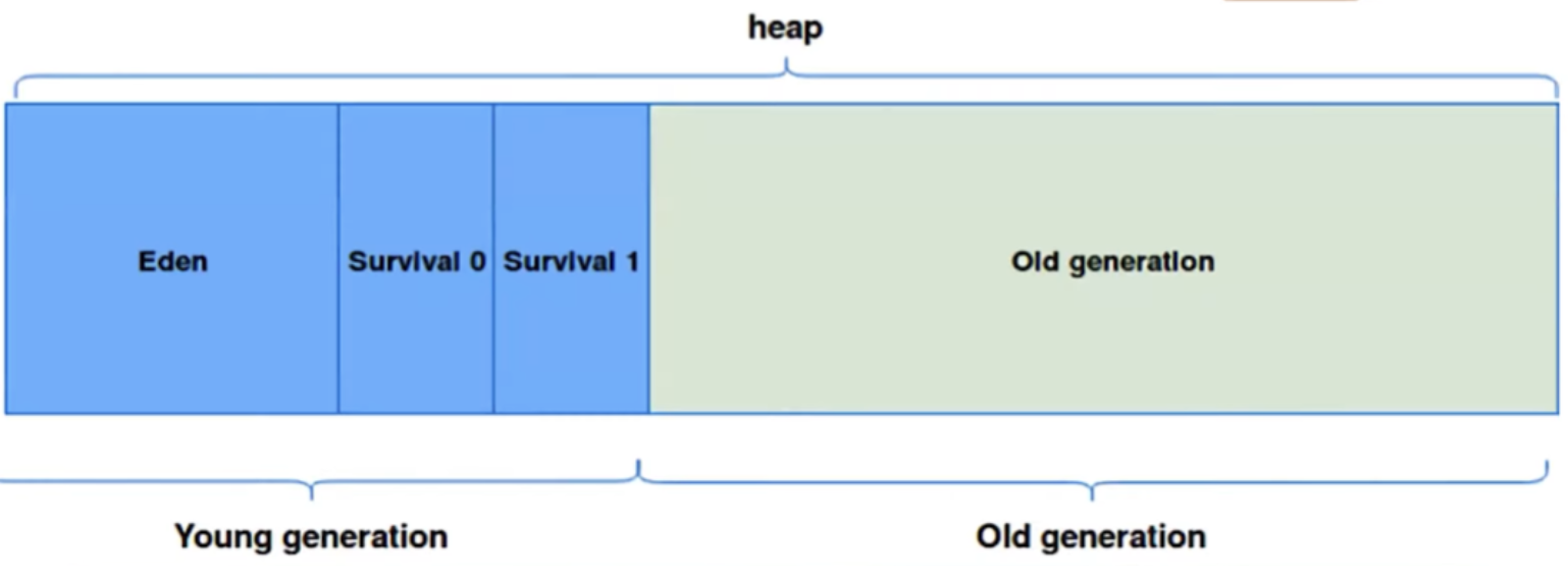 - Young Generation은 1개의 Eden영역과, 2개의 Survivor 영역으로 구성됩니다.