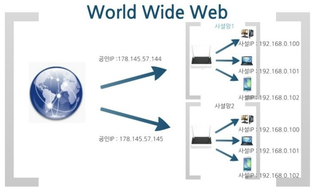 - 공인 IP는 전세계에서 유일한 IP 주소를 갖는다.